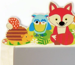 Ova kvalitetna drvena vješalica s razigranim motivom Šumske životinje unosi boje i red u dječji interijer. Zahvaljujući pet čvrstih kukica lako ćete organizirati jakne, majice s kapuljačom, ruksake i dodatke. Integrirano zrcalo od nelomljivog pleksiglasa je lagano, sigurno i idealno za svakodnevnu upotrebu.