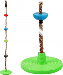 Zabavno i sigurno dječje penjačko uže s višebojnim diskovima i okruglom plastičnom ljuljačkom za igru na otvorenom. Poticanje kretanja, koordinacije i snage. Ima nosivost 100 kg i čvrsto uže debljine 2,6 cm, idealno za dječje igralište ili kućicu na drvetu.