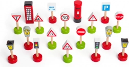 Set drvenih prometnih znakova BIGJIGS RAIL idealan je dodatak drvenim željeznicama i drugim drvenim konstrukcijskim setovima. Jasno ilustrirani simboli (STOP, brzina, upozorenje itd.) djecu na zabavan način upoznaju s osnovama prometnog odgoja. Robusna izrada od prirodnog drva osigurava dugotrajnost i pri svakodnevnoj igri.