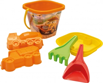 - 2 kalupa u obliku teretnog vozila i mješalice za zabavnu gradnju na pješčaniku.