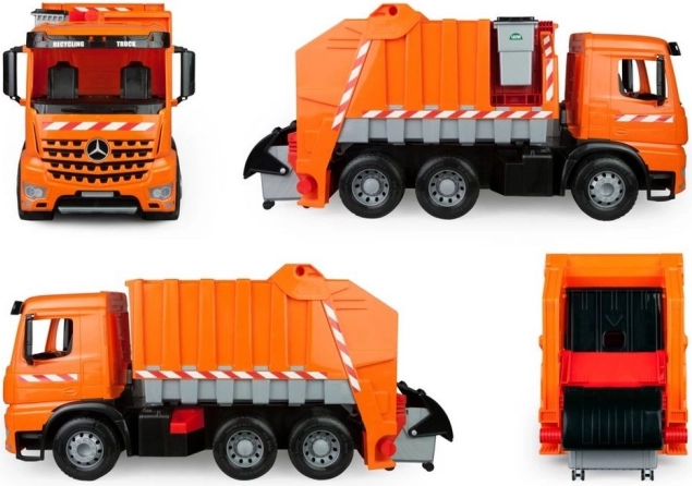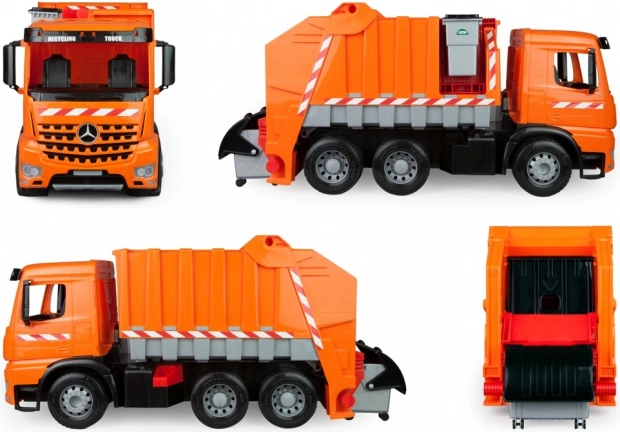 Ovaj detaljno izrađen kamion za smeće MERCEDES AROCS potiče dječju maštu i igru uloga. Zahvaljujući čvrstoj izradi i realističnim elementima, poput stražnjeg mehanizma za utovar i mobilnih spremnika, djeca lako shvaćaju princip razdvajanja i odvoza otpada.