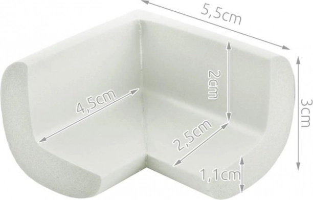 Praktični pjenasti štitnici za kutove u snježnobijeloj boji štite od udaraca o oštre rubove stolova, ormarića ili stepenica. Mekana i elastična pjena, jednostavna ugradnja pomoću jakih obostranih traka i lako održavanje za sigurniji dom, posebno s djecom.
