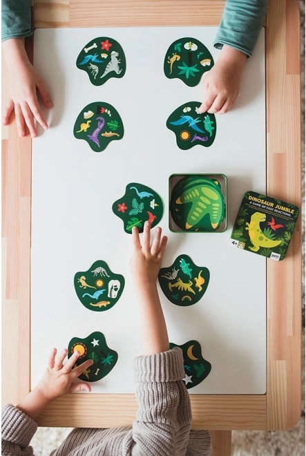 Vježbajte svoju uočljivost s dinosaurima. Ova kartaška igra nudi do pet varijanti pravila i prepuna je šarenih ilustracija s motivima dinosaura. Sigurno ćete je brzo zavoljeti i zbog njezine kompaktne veličine, pa je pogodna za igru kod kuće i na putovanjima. Pakirano u metalnoj kutijici bez upotrebe plastike. Glavne značajke za 2–6 igrača 5 varijanti pravila praktično pakiranje Upute za igru: Osnovna varijanta: Svakom igraču podijelite jednu kartu licem prema dolje. Špil okrenut licem prema gore stavite između igrača. Na dogovoreni znak igrači okreću svoje karte. Igrač koji prvi prijavi isti simbol na svojoj karti i karti na špilu uzima kartu sa špila. Tako se špil na kraju razdijeli, a pobjednik je igrač s najvećim brojem karata. Obrnuta varijanta: Podijelite karte među igrače tako da svi drže isti broj karata i jedna karta ostane. Igrači svoje karte u špilu stave ispred sebe licem prema dolje. Preostalu kartu, okrenutu licem prema gore, stavite između igrača. Na dogovoreni znak igrači okreću gornju kartu svog špila. Tko prvi prijavi simbol koji je isti na svojoj karti i karti među igračima, svoju kartu odlaže među igrače na nastajuću hrpicu i okreće svoju sljedeću gornju kartu. Tako igra traje dok ne ostane posljednji igrač s kartama, koji time postaje poražen. Igrač koji se prvi riješi svojih karata je pobjednik. Skupna varijanta: Igra se u rundama. U svakoj rundi se ispred svakog igrača podijeli po jedna karta licem prema dolje. Na dogovoreni znak igrači okreću svoju kartu, a onaj koji imenuje i prijavi simbol koji se podudara sa simbolom na karti drugog igrača svoju kartu mu predaje. Igra se nastavlja dok jedan igrač ne primi sve podijeljene karte u toj rundi. Cilj igre je rješavati se karata; igrač koji je u zbroju rundi primio najviše karata je poražen. Dimenzije pakiranja: 10 × 10,5 × 5 cm Dob: 4+ Materijal: metal, papir Broj dijelova: 31 kom