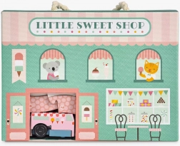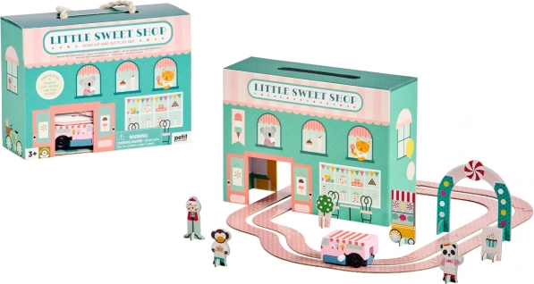 Priuštite djeci slatku pustolovinu s igraćim setom slastičarnica brenda PETIT COLLAGE. Obostrana slastičarnica, drveni navijajući sladoledarski auto i lako sklopiva staza od 8 dijelova osigurat će sate kreativne zabave. Set je bez plastične ambalaže, izrađen od materijala s FSC certifikatom i zahvaljujući užetnoj ručki lako se prenosi – idealno za dom i putovanja.