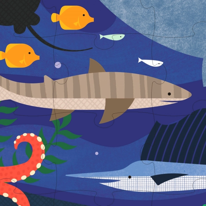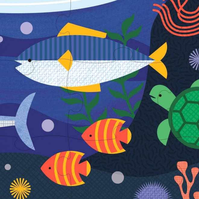 Otkrijte fascinantan podmorski svijet s dvostrukim užitkom zahvaljujući dvostranoj slagalici. Svaka strana sadrži drugačiji dizajn pun morskih stvorenja, što jamči raznoliku i zabavnu igru za djecu od 5 godina naviše. Slagalica je izrađena od kvalitetnog papira s FSC certifikatom i tiskana bojama dobivenima iz povrća.
