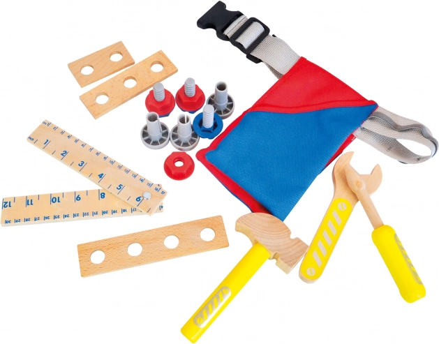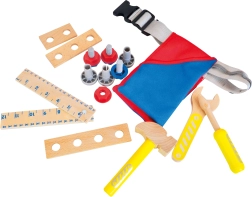 Pružite malim zaljubljenicima u zanate njihovu prvu opremu. Dječji pojas s alatom marke Bino nudi kompletan set od 17 dijelova drvenih i plastičnih alata smještenih u izdržljivom tekstilnom pojasu s praktičnim džepovima i podesivom dužinom. Podržava igru uloga, maštu i zdravu samouvjerenost.
