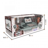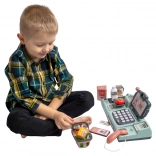 Blagajna uključuje terminal, pomoću kojeg dijete može plaćati gotovinom, karticom ili smartphoneom, baš kao odrasli u trgovini. Integrirana vaga i pokretna traka omogućuju djetetu da organizira kupovine i doživi pravu ulogu prodavača.