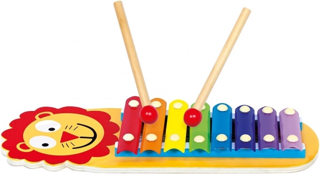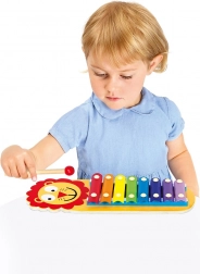 Dječji ksilofon s veselim motivom lavića donosi zabavno učenje i kreativnu svirku. Osam šarenih metalnih pločica na drvenoj podlozi zvuči jasno i ugodno, pa djeca lako otkrivaju tonove, ritam i prve melodije. U pakiranju su uključene dvije drvene palice za udobno sviranje objema rukama.