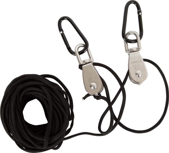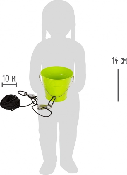 Ovaj robustan set kombinira izdržljivu metalnu kantu, snažno uže od 10 m i par kolotura s karabinerima za lako vješanje. Djeca na zabavan način uče kako funkcionira mehanička prednost te s minimalnim naporom podižu manje predmete na visinu.