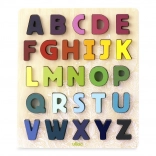 Otkrijte zabavan način učenja abecede! Ova šarena drvena slagalica pomaže razvijati pamćenje i koordinaciju ruke i oka, dok djeca uče slova i slažu riječi.
