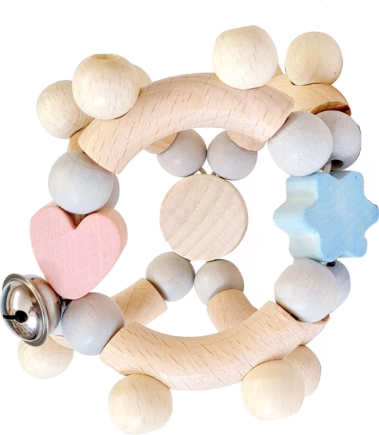 Drvena motorička zvečka marke Hess očarava pastelnim bojama i zvončićem koji potiču maštu i poboljšavaju finu motoriku djeteta.