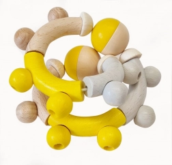 Hess drveno zvečkalo u žutoj boji idealno je za razvoj motoričkih vještina vašeg djeteta. Izrađeno od visokokvalitetnog, ekološki obrađenog drva, nudi kreativne mogućnosti zahvaljujući osam dijelova na elastičnoj vrpci.