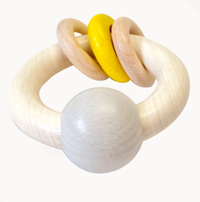 Drvena zvečka za vašu djecu pomaže razvijati prve motoričke vještine i idealan je pratitelj i kod kuće i na putovanjima. Svi materijali otporni su na slinu, što štiti igračku od oštećenja.