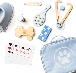 Kompletni veterinarski koferić omogućuje djeci brigu o plišancima i figuricama ljubimaca kao pravom doktoru. U setu se nalaze alati kao stetoskop, toplomjer, otoskop, injekcijska šprica, zavoj, četka, zaštitni ovratnik i drugi dodaci. Sve je pohranjeno u izdržljivoj tekstilnoj torbici s otiskom šape, idealnoj za nošenje i spremanje.