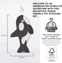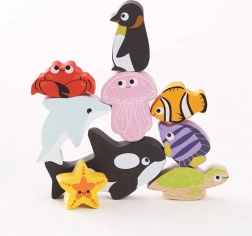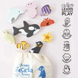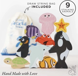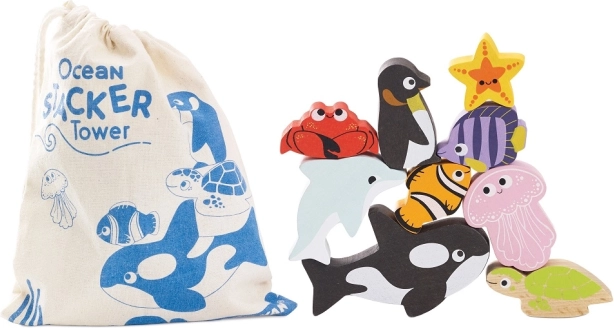 Ova kvalitetna drvena slagalica s motivom oceana donosi djeci od 18 mjeseci sate sigurne i kreativne igre. Dijelovi u obliku kita, dupina, morske zvijezde, pingvina, morske kornjače, meduze i drugih morskih prijatelja dizajnirani su tako da dobro leže u dječjoj ruci te potiču koordinaciju oko–ruka, strpljenje i maštu.