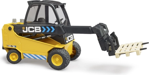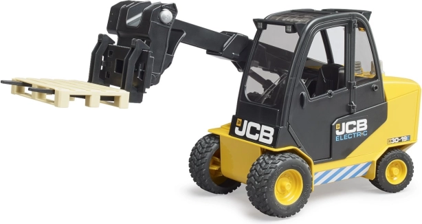Otkrijte detalje i funkcionalnost modela viličara JCB Teletruck od Brudera. Ovaj model je umanjen u mjerilu 1:16 i potpuno je funkcionalan, što uključuje: