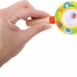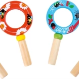 Ova kvalitetna dječja lupa spaja čvrstu drvenu ručku i lagani plastični lećni element kako bi bila sigurna i udobna za male ruke. Vesele ilustracije kukaca i cvijeća motiviraju djecu na otkrivanje detalja okolnog svijeta – od cvjetova do sitnih buba.