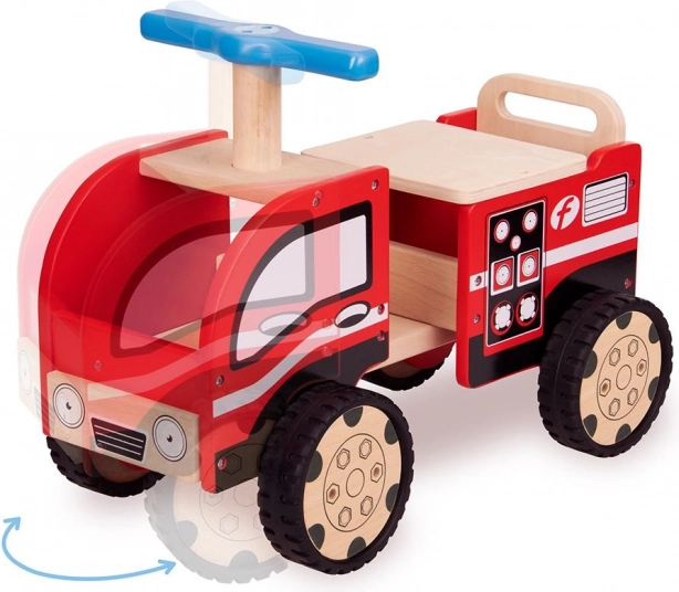 Drveno guralo u obliku vatrogasnog vozila s realnim detaljima potiče zabavu i inspirira imaginativnu igru.