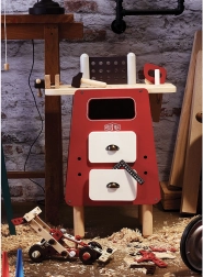 Vilac Moj radni stol osmišljen je tako da djeca mogu sigurno eksperimentirati i razvijati svoje mehaničke vještine. Zahvaljujući čičku djeca mogu „rezati” drvo, čekićem zabijati drvene čavliće te uz pomoć odvijača i ključa montirati i demontirati razne dijelove. Ova igračka potiče maštu, strpljenje i domišljatost.