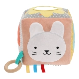 Ova tekstilna kocka savršeno je dizajnirana za osjetilni razvoj vašeg djeteta. Zahvaljujući raznovrsnoj paleti aktivnosti, poput prijateljskih lica životinja i različitih tekstila, idealna je za istraživanje svakog malog detalja.