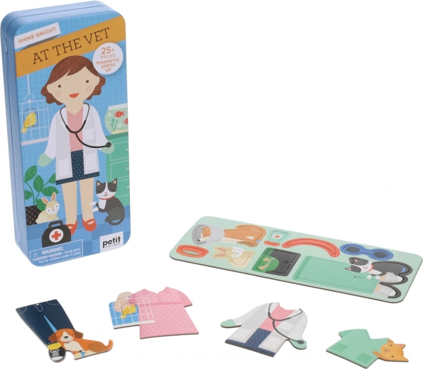 Magnetski set za male veterinare nudi niz magnetskih dijelova odjeće i profesionalne opreme koji zajedno sa scenama u interijeru čine praktičan set za putovanja. Potiče kreativnost i zabavnu igru bilo gdje.