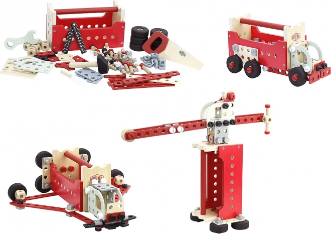 Tražite igračku koja će razvijati motoričke vještine i kreativno razmišljanje vaše djece? Obostrana kutija s alatom Vilac pravi je izbor! Ovaj set sadrži čak 96 dijelova koji omogućuju sastavljanje modularnih konstrukcija poput teretnog vozila, dizalice ili čak robota. Dizajn Ateliera Vilac jamči kvalitetnu izradu i atraktivan vintage izgled. Djeca će se moći okušati u ulozi malog majstora i uljepšati svoje kraljevstvo igračaka.