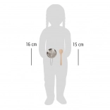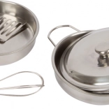 Lonac s odvojivim poklopcem pridonosi realističnim scenarijima igre i potiče dječju maštu. Drvena kuhača zajedno s metalnim alatima poput lopatice i pjenjače nudi širok izbor mogućnosti za igru. Tekstilna rukavica za pećnicu i podložak za lonac daju autentičan dojam i doprinose sigurnosti tijekom igre.