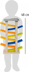 Staza je izrađena od prirodnog drva i čvrste plastike, što osigurava dugotrajnu izdržljivost tijekom igre. Raznobojni dizajn staze nije samo lijep, već je i idealan za razvoj motorike i koordinacije ruka-oko.