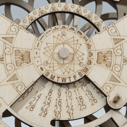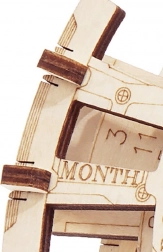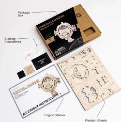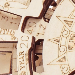Ovaj jedinstveni 3D drveni mehanički model u obliku stolnog kalendara pruža ne samo estetski doživljaj, već i praktičnu funkciju planiranja datuma od 2018. do 2040. Set sadrži 26 dijelova koji se lako sastavljaju prema priloženim detaljnim uputama. Idealan za početnike i iskusne zaljubljenike u mehaničke slagalice. Zahvaljujući rotacijskim kotačićima možete odabrati konkretnu godinu i mjesec te odmah vidjeti pripadajući mjesečni kalendar.