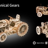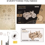 ROBOTIME Rokr donosi fascinantnu 3D drvenu slagalicu traktora s realističnim detaljima. Ovaj mehanički model ne treba baterije, jednostavno navijte motor ključem i gledajte kako oživljava. Zahvaljujući okretanju volana možete mijenjati smjer kretanja prednjih kotača, što dodaje na interaktivnosti.