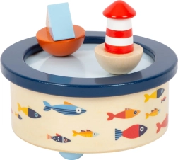 Čarobna drvena glazbena kutijica s pomorskim motivom koja uspavljuje djecu njemačkom uspavankom. Na vrhu se u ritmu melodije okreću svjetionik i brodić, koji se drže na mjestu pomoću magneta. Sigurno zaobljeni rubovi, ugodan drveni materijal i kvalitetan tisak u modernim bojama čine je idealnim dodatkom dječjoj sobi.