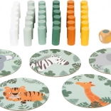 Zabavna drvena balansirajuća igra nadahnuta Jengom: klimava kula SMALL FOOT SAFARI s šarenom kockom određuje koji će se dio izvući. Razvija spretnost, ravnotežu, koncentraciju i strpljenje, a zahvaljujući simpatičnim safari motivima u modernim bojama razveselit će cijelu obitelj.