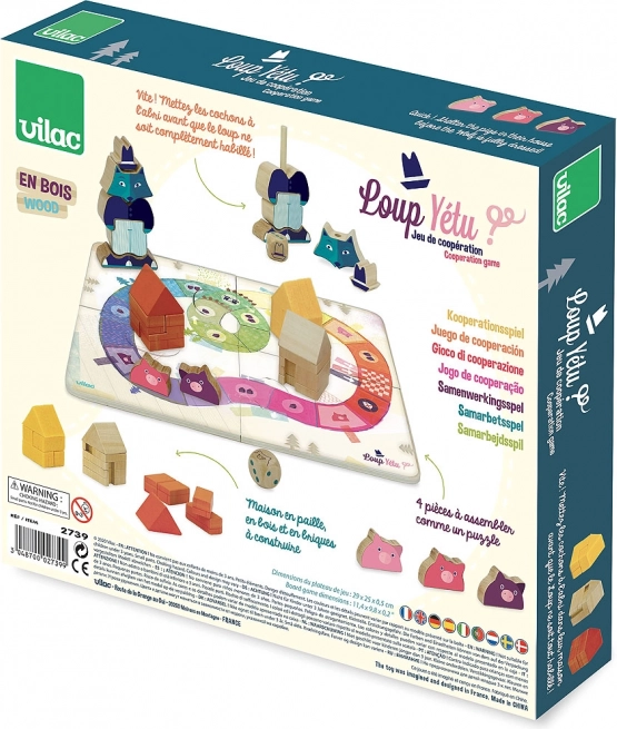 Omiljena bajkovita kooperativna igra brenda Vilac u kojoj se tri praščića natječu s vukom tko će prije sagraditi slamenu, drvenu i zidanu kućicu. Djeca vježbaju suradnju, logiku i finu motoriku slažući drvene dijelove i bacajući kocku. Idealna prva obiteljska igra za djecu od 3 godine.