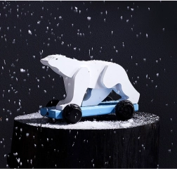 Ova stilska vučna polarna medvjedica brenda Vilac nastala je u suradnji s RMN-om i Muzejom Orsay kao posveta legendarnom kiparu Françoisu Pomponu. Minimalistički oblici i nježne linije polaze od njegovih ikoničnih životinjskih silueta, zahvaljujući čemu igračka djeluje bezvremenski i lijepo se uklapa u svaku dječju sobu.