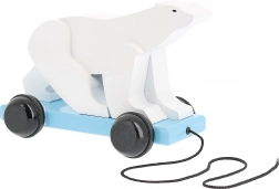 Medvjedić je izrađen od kvalitetnog drva, ima stabilno podvozje s glatkim kretanjem i ugodnu vučnu uzicu za male dječje ruke. Tijekom igre djeca prirodno vježbaju ravnotežu, koordinaciju i sigurnost pri hodu.