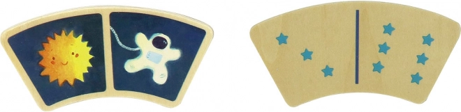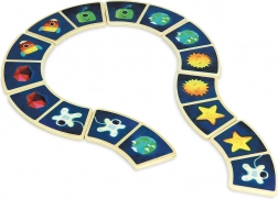 Jedinstveno dječje domino sa svemirskim motivima donosi kreativnu zabavu za male i velike. Set sadrži 28 drvenih pločica koje su prikladne i za najmlađu djecu zahvaljujući zaobljenom obliku.