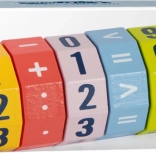 Ovo kvalitetno drveno pomagalo kombinira vizualno atraktivan dizajn s praktičnim učenjem. Šest okretnih segmenata s brojevima i matematičkim simbolima omogućuje djeci slaganje vlastitih zadataka za zbrajanje, oduzimanje, množenje i dijeljenje. Okretanjem prstenova nastaju jednadžbe koje motiviraju djecu na rješavanje i prirodno jačaju njihovu numeričku pismenost.