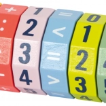 Šest okretnih prstenova s brojevima i simbolima omogućuje stvaranje zadataka za zbrajanje, oduzimanje, množenje i dijeljenje do 99 – zabavan put do razumijevanja osnova.