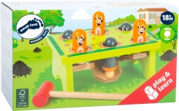 Zabavna drvena igra za zabijanje s motivom Krtka donosi djeci radost igre i istodobno razvija vještine. Pri svakom udarcu čekićem iz druge rupice iskoči novi krtko, što potiče koordinaciju oko–ruka, finu motoriku i prepoznavanje brojeva zahvaljujući numeriranim rupama. Igračka je izrađena od 100% FSC drva s naglaskom na sigurnost i kvalitetnu izradu.