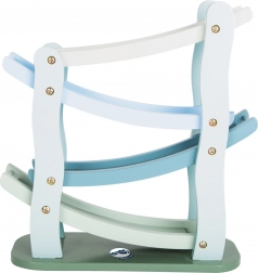 Drvena kaskadna staza SMALL FOOT Blue izvrstan je suputnik za djecu od 18 mjeseci. Autići startaju s gornjeg kata i jure niz kose rampe, pritom se efektno prevrću – sve to potiče koncentraciju, strpljenje i radost otkrivanja uzroka i posljedica.