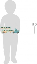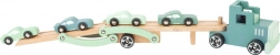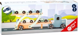 Set sadrži kamion s prikolicom i ukupno četiri sportska autića. Igra razvija koordinaciju oko–ruka, finu motoriku i kreativno pripovijedanje. Zahvaljujući kvalitetnim materijalima i glatko obrađenim rubovima, igračka je prikladna za djecu od 3 godine.