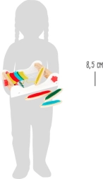 Ovaj dječji tkalački okvir od kvalitetnog drva pomaže razvijati finu motoriku, koncentraciju i strpljenje. Zahvaljujući ekstra velikom, glatkom zateznom gumbu djeca mogu udobno namjestiti napetost osnove i usredotočiti se na samo stvaranje. U pakiranju su četiri drvene špulice s unaprijed namotanom pređom u različitim bojama – stvaranje može započeti odmah.