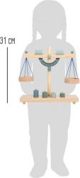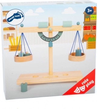 Tijekom usluživanja „kupaca” djeca uče komunikaciju, suradnju i poštenu razmjenu. Zahvaljujući kvalitetnom drvu s prirodnim izgledom i ugodnim sivo-plavim tonovima, vaga je ne samo izdržljiva nego i estetski privlačna te sigurna za dječje ruke.