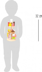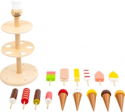 Igra prodavača sladoleda prirodno razvija socijalne vještine, komunikaciju i finu motoriku. Štand je izvrstan ukras na pultu ili polici, a zahvaljujući pažljivoj izradi od masivnog drva siguran je i trajan.