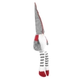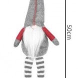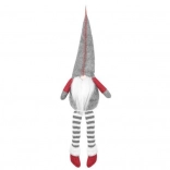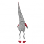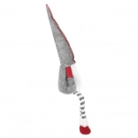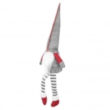 Tekstilni dekorativni vilenjak u sivo-crvenoj izvedbi ima tipičnu visoku šiljastu kapu, duge prugaste noge i mekanu bijelu bradu. Zahvaljujući posebnom profilu na stražnjoj strani stabilno sjedi na rubu stolića ili police i interijeru daje topao, ugodan ugođaj.