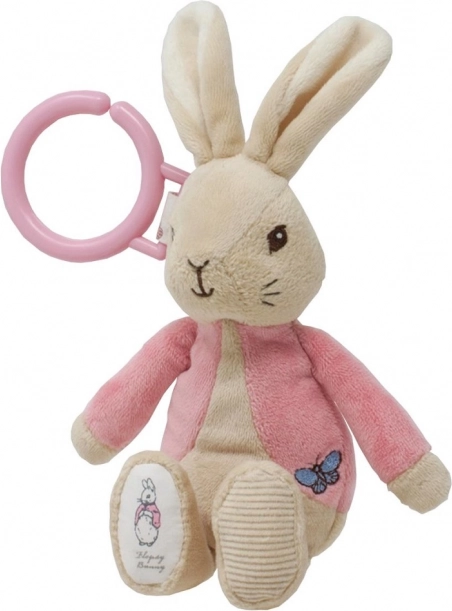 Ovaj plišani zeko Flopsy idealna je igračka za djecu od rođenja. Dizajniran je s obzirom na sigurnost i zabavu djece. Flopsy se lako pričvršćuje pomoću ružičastog plastičnog prstena na bilo koja kolica, auto-sjedalicu ili krevetić, što ga čini izvrsnim suputnikom na putovanjima.