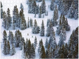 Otkrijte bezvremenske zračne snimke brenda GRAY MALIN u obliku premium dvostrane slagalice. Jedna strana vodi vas u mirnu zimsku scenu sa zasniježenim stablima, druga oživljava dinamikom šarenih skijaša na oštrom bijelom snijegu. Svaki dio savršeno pristaje, pa je slaganje glatko i zadovoljavajuće.