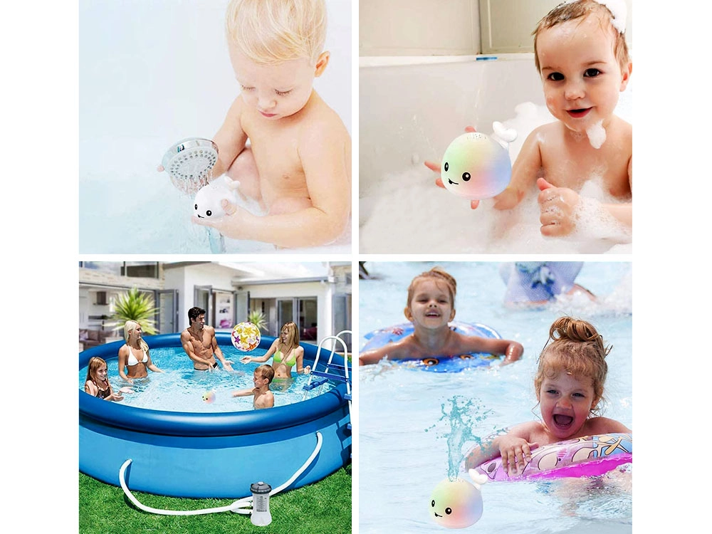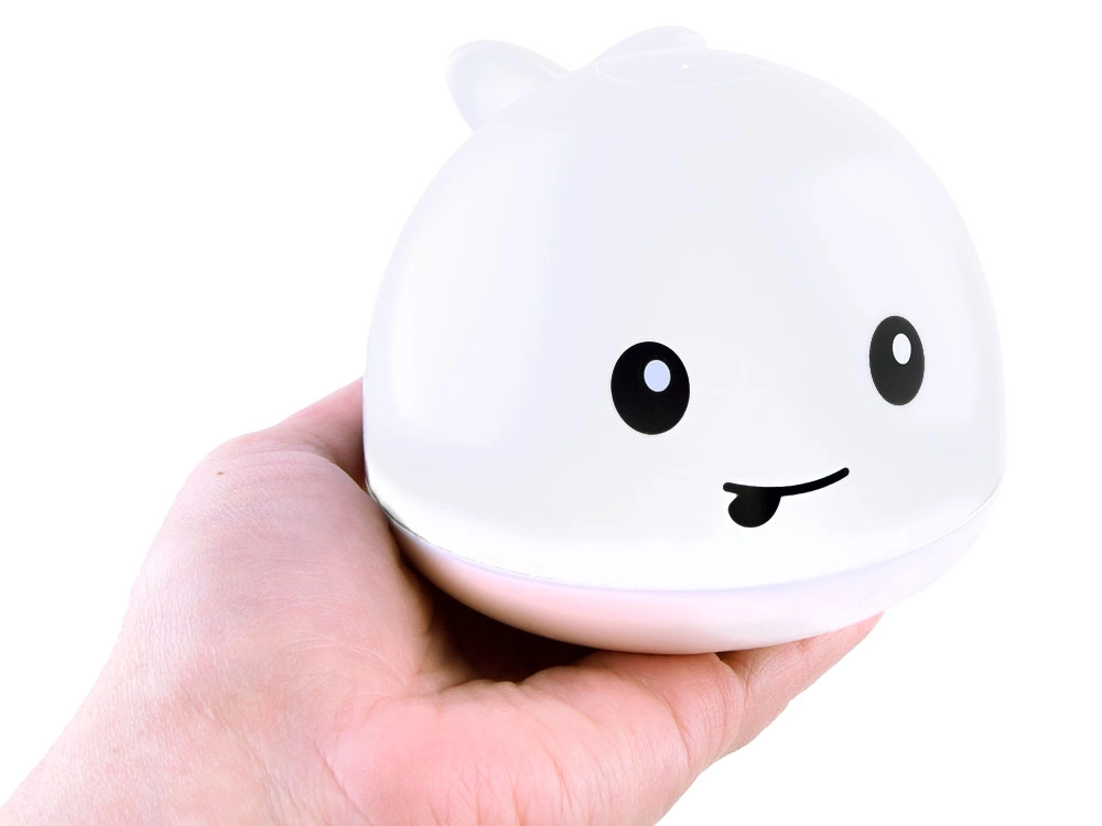 Slatki kit pretvara svako kupanje u zabavu – pri kontaktu s vodom automatski se aktivira, stvara mini fontanu i svijetli šarenim LED svjetlima. Zahvaljujući kompaktnim dimenzijama lako stane u dječje ručice i potiče djecu na kupanje.