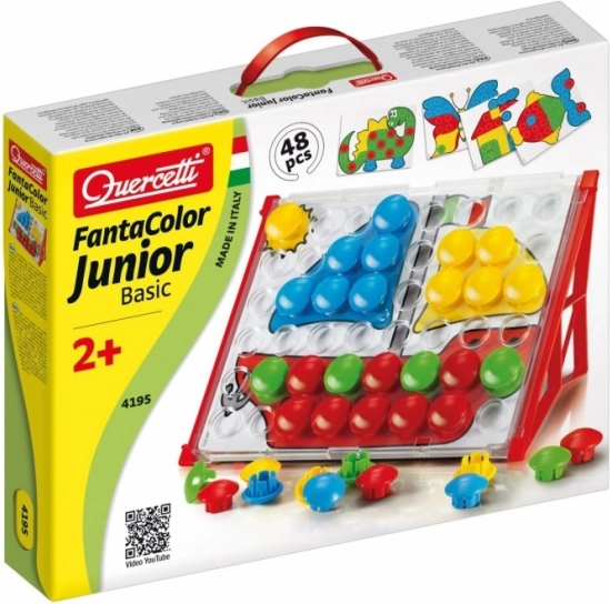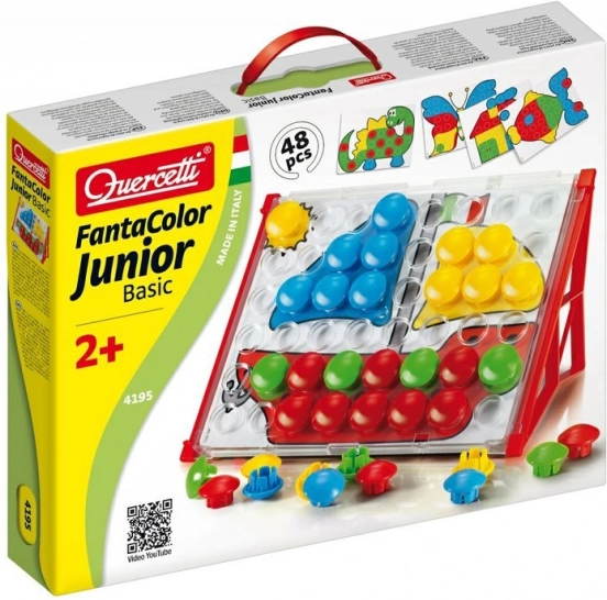 Fantacolor Junior Basic idealna je didaktička igračka za predškolce. Djeca umeću velike šarene gumbe u rupe prema predlošcima ili vlastitoj mašti te na zabavan način vježbaju koordinaciju oka i ruke, razlikovanje boja i logičko razmišljanje. Zahvaljujući robusnoj izradi i sigurnim dimenzijama, mozaik je prikladan već od 2 godine.