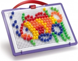 Zabavna i praktična ručna mozaička igra za male kreativce: prijenosni koferić s perforiranom pločom i 150 šarenih čavlića promjera 10 mm razvija finu motoriku, kreativnost i maštu. Zahvaljujući pametnom dizajnu, sve se nakon igre pospremi u koferić, a poklopac služi kao ploča za igru.